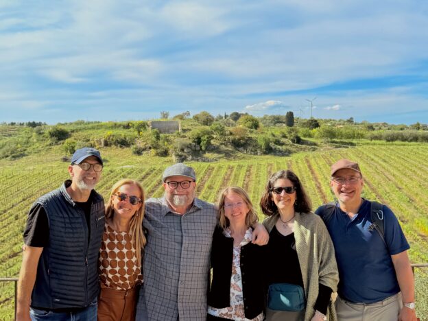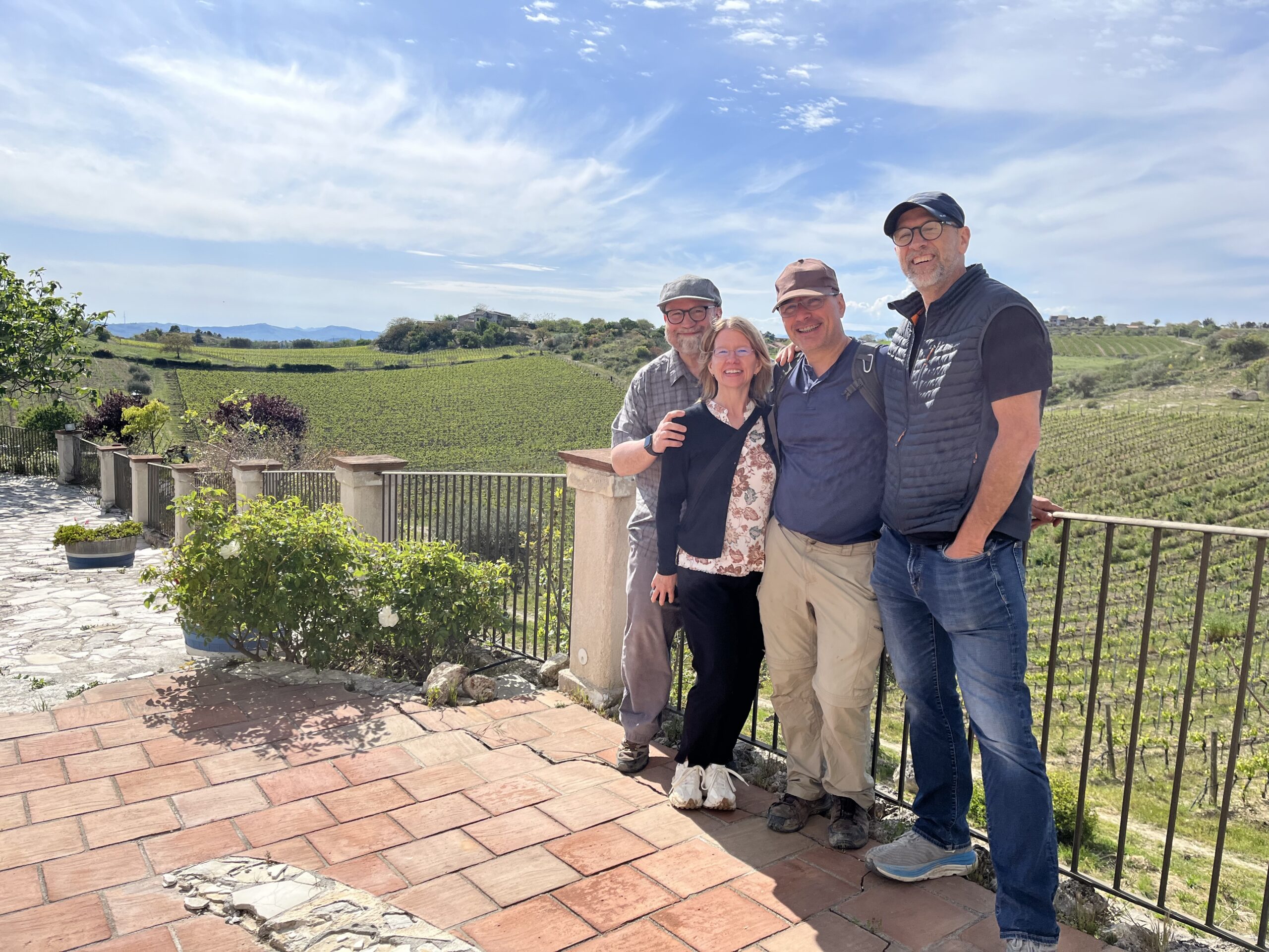 Except now we are combing our home life with our travel life in rural Sicily. We have packed up Potluck staples Karen and Tom Palmer and traveled here to visit original Potluck co-founding family Chris and Wendy Brooks in their lovely European headquarters.